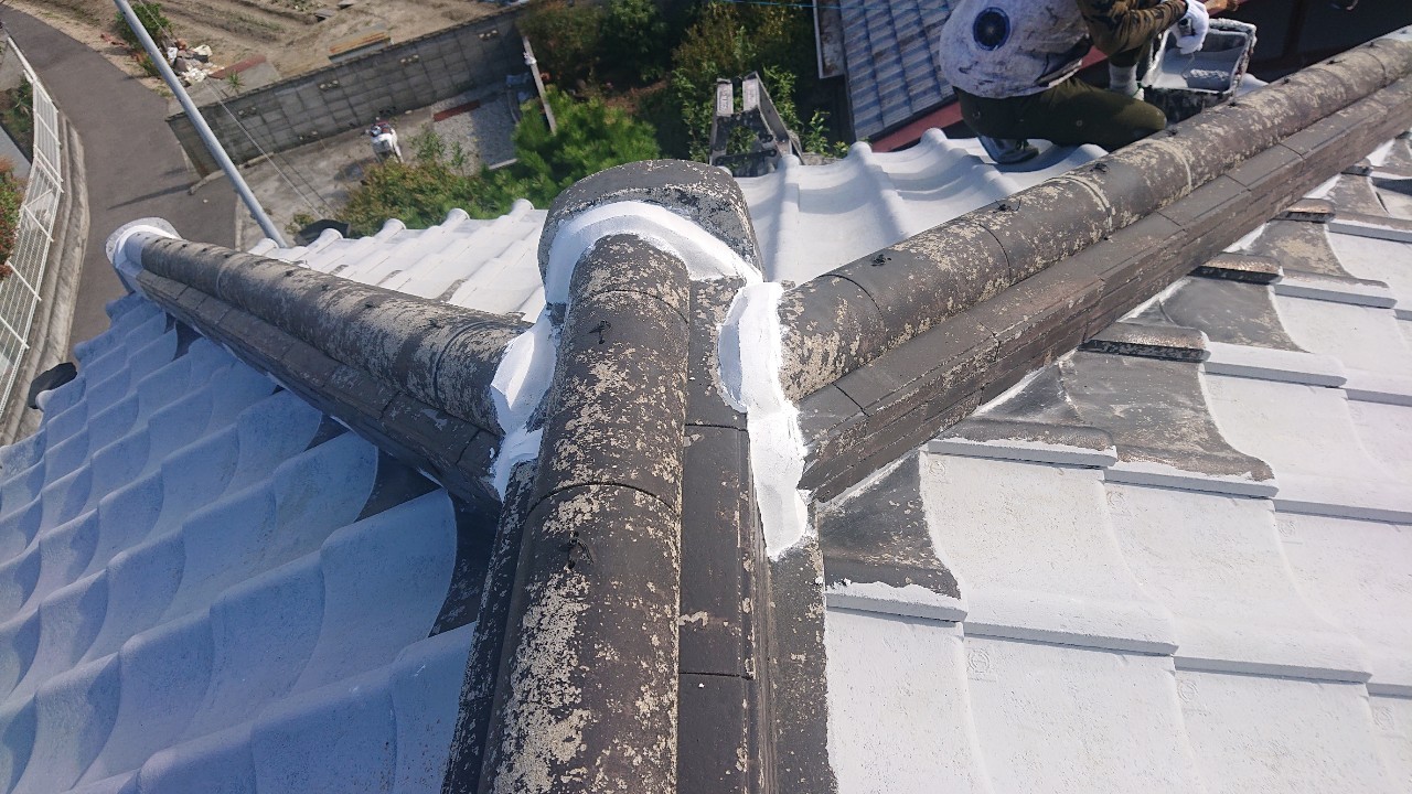 ホーム > 丸亀市にて経年劣化した二階建て和型セメント屋根補修工事
