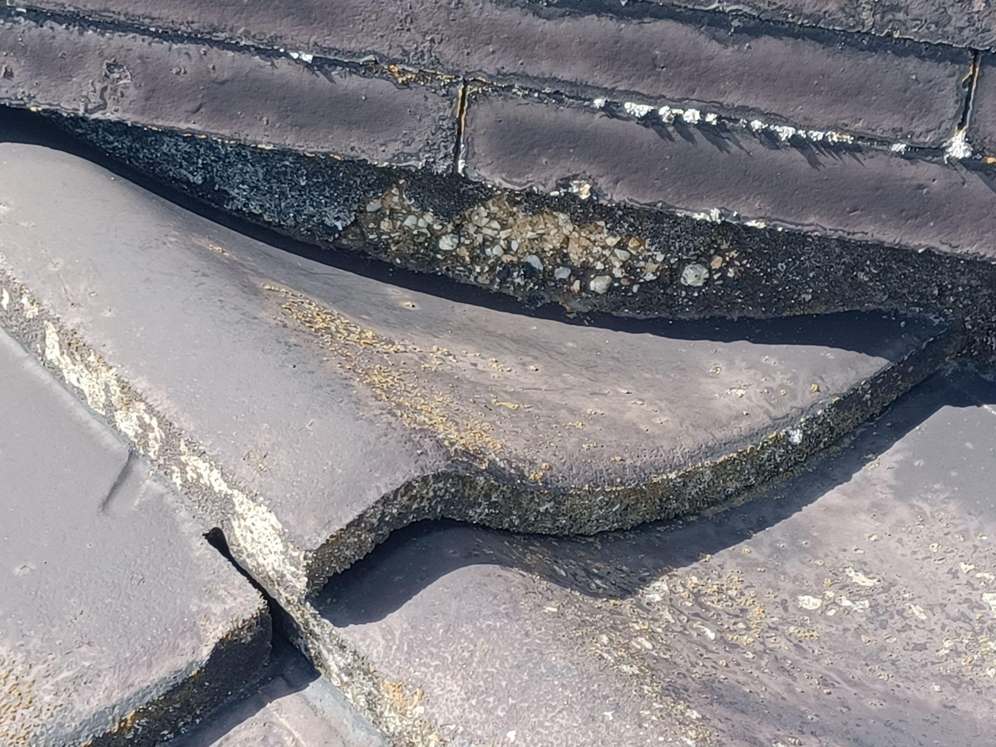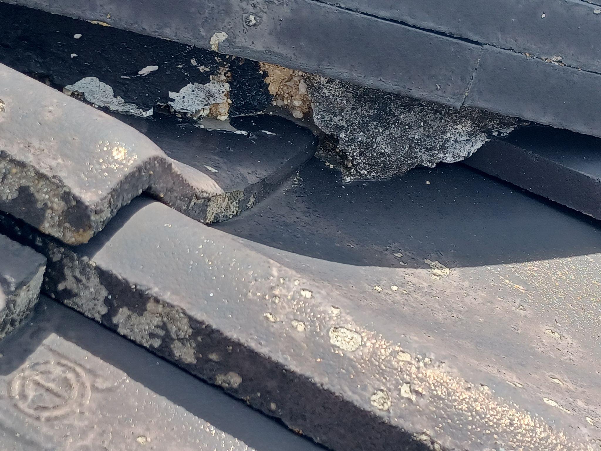 これまでメンテナンスをしていなかったそうで、カビやヒビ、割れなど瓦の表面の傷みがあり、このまま放置しておくと、さらなる劣化が進む可能性があります。