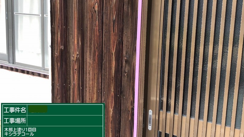 - 焼き杉板の黒さが抜けて、木の色が見えてきている