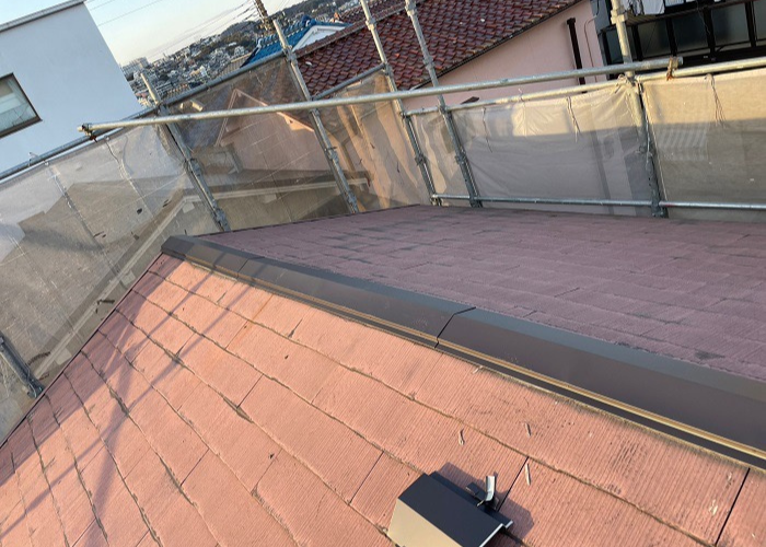 棟板金を適切に交換することで、屋根のつなぎ目からの雨水侵入を防ぎやすくなります。 屋根全体の耐久性を保つためにも、棟部分のメンテナンスはとても大切です。