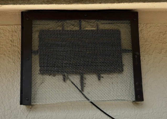 2階部分の換気口に害虫対策でステンレス製の網貼りを実施