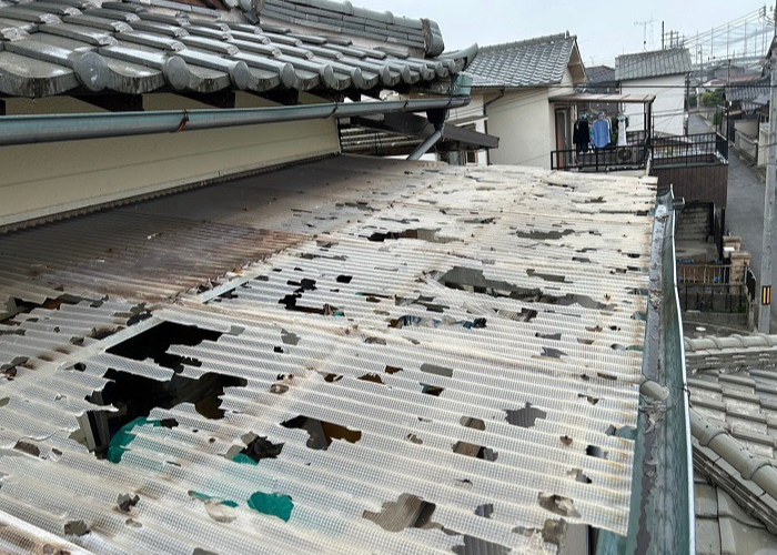 ホーム > 【豊中市】2階ストックヤードの波板交換を足場なしで行う費用は…