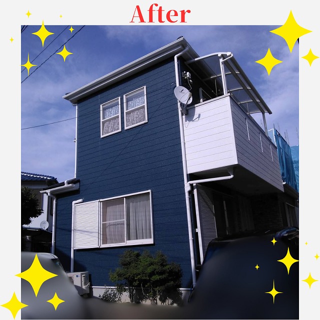 施工後はブルーとホワイトの組み合わせで、印象ががらりと変わったスタイリッシュな外壁になりました✨