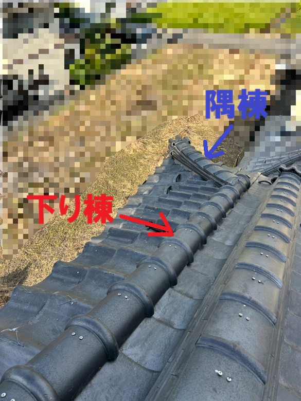 瓦屋根に設置されている、「下り棟」「隅棟」の箇所から雨水が侵入している可能性が高く、