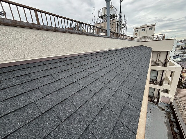 今回は長年の風雨で表面の石粒が剥がれ、全体的に防水性能が低下していたことが大きなポイントで、建物の寿命に関わるため早期対応が求められる状態でした。屋根は普段見えにくい場所だけに、お客様も不安を抱えておられましたが、現場で状況を丁寧に確認しながら安心していただけるよう進めていきました🏠