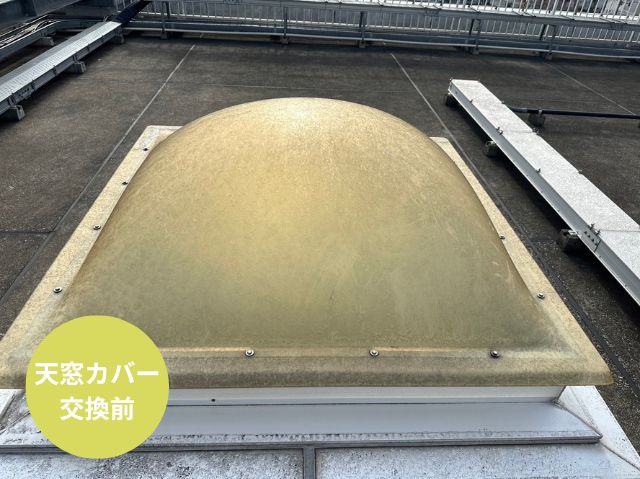 さいたま市大宮区にあるビルのオーナ様より、天窓カバーの変色劣化が気になっているので交換してほしいとのご依頼を頂きカバー交換工事を実施しました。