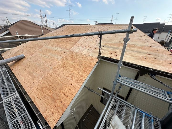 - 施工内容:屋根葺き替え 足場
