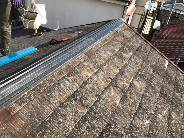 葛飾区柴又にお住まいのS様邸にて行った棟板金交換工事の様子をご紹介いたします。