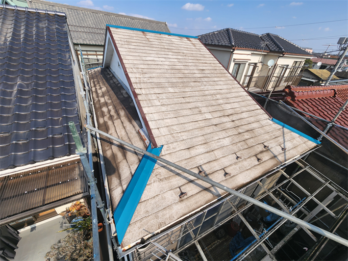 この工程で下地が腐っていたり、屋根材にヒビが入っていた場合は、必要に応じて補修します。