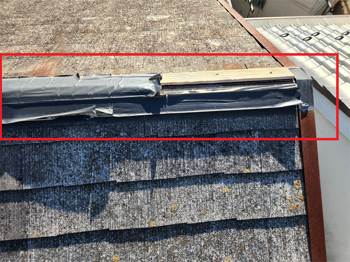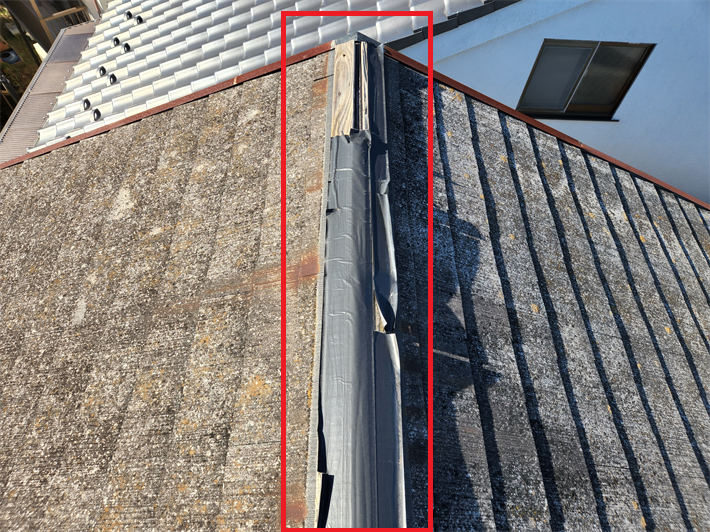 棟板金が外れてしまうと屋根材のスレートの下に敷設されている防水紙が露出してしまい、