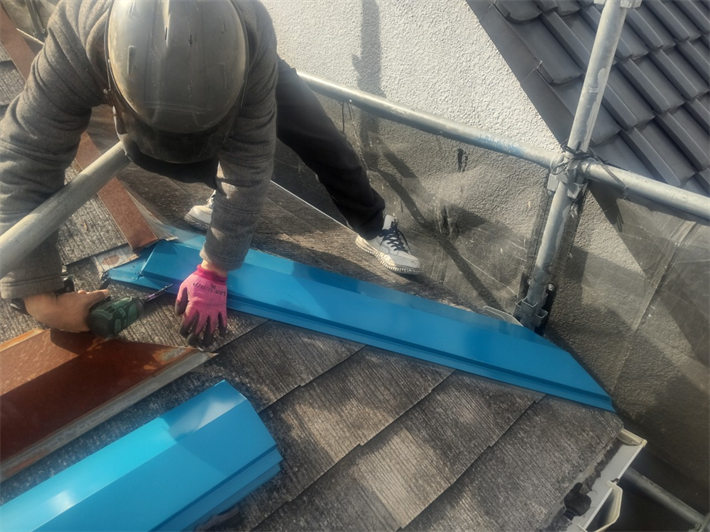 貫板を固定したら、次に新しい棟板金を取り付けます。
