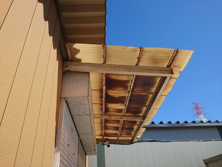 庇に取り付けられたボロボロになってしまった波板の場所はすぐにわかるほど劣化していました。