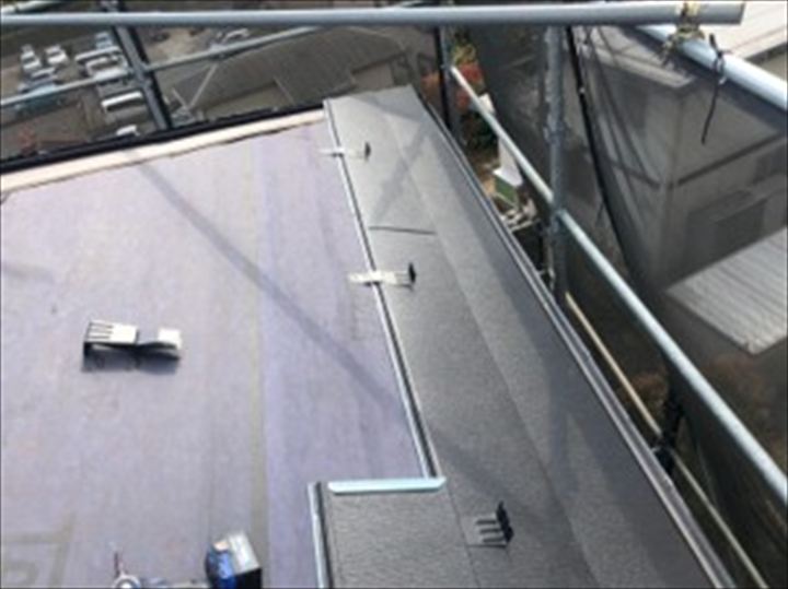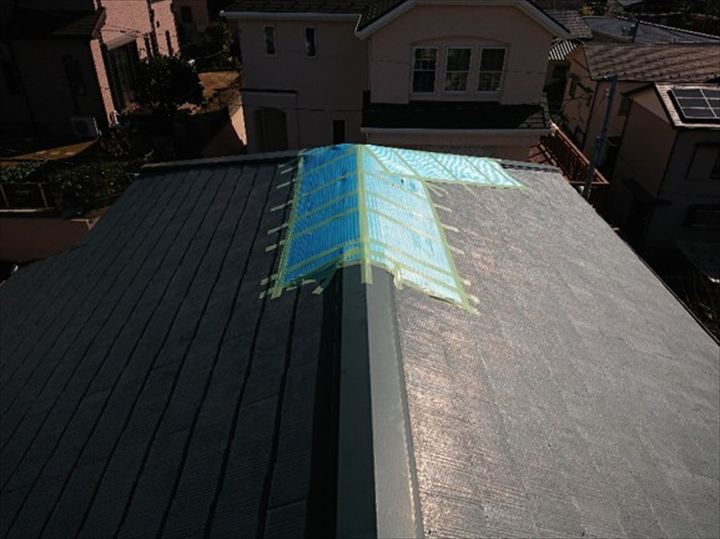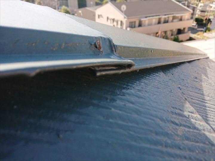 逗子市沼間にて強風の影響で棟板金が飛散したため、雨漏りが発生する前に屋根カバー工事を行いました。
