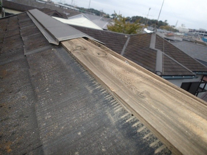 残っていた貫板も劣化していたため、すべて取り外し、新しい貫板と棟板金に交換します。