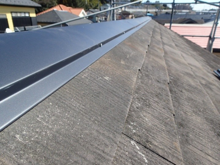 今回の工事は、強風による棟板金の飛散がきっかけでした。