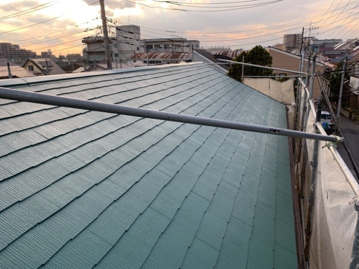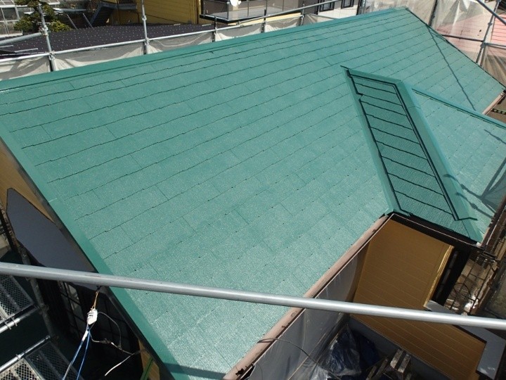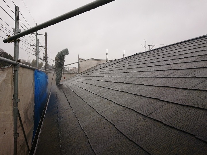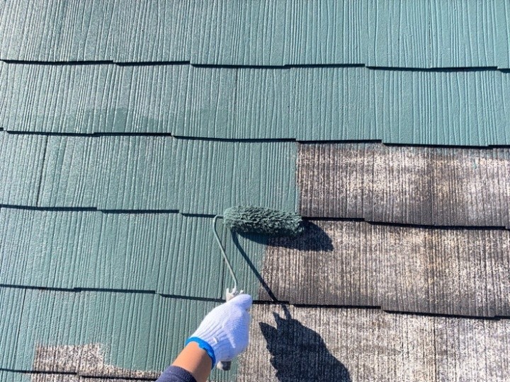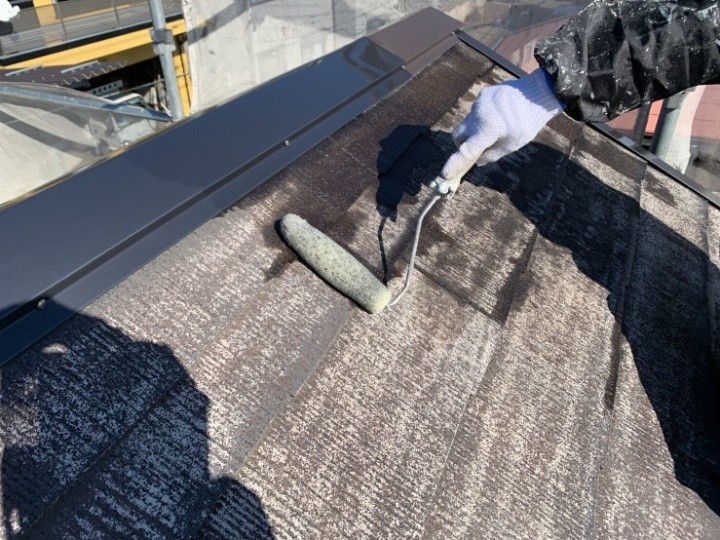 下塗りは、屋根材の表面を整え、この後塗る上塗り塗料との密着を高める役割があります。