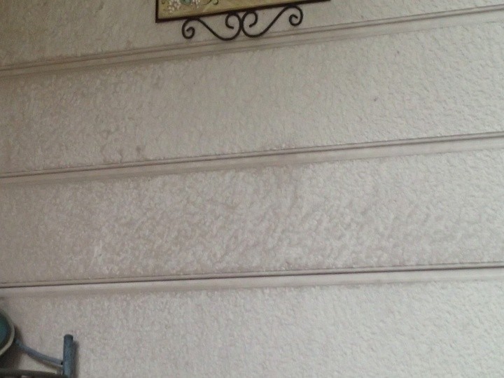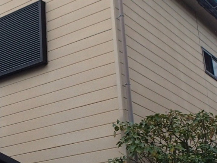 窯業サイディングの外壁で、塗膜の劣化により色あせが目立っています。
