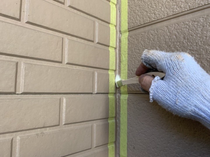 シーリング材を打つ前に、プライマーで下地の密着性を高めてから充填していきます。