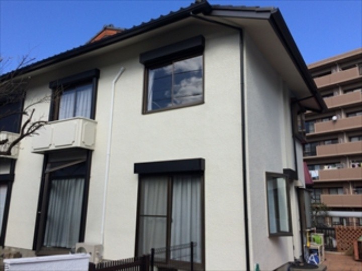 今回の塗装は、レンガ調タイル部分を除く白い外壁部分を対象です。