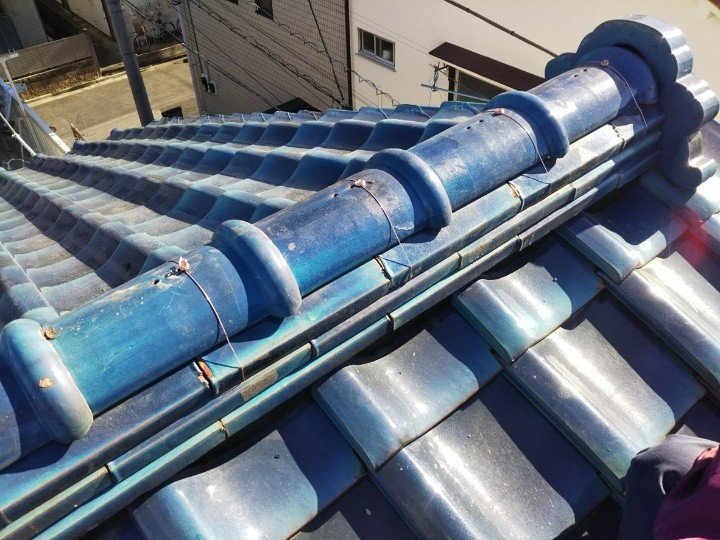 お客様から「屋根の棟板金が強風で落下して、残っている部分も外れかかっているようで不安」とのご相談頂いた事が工事のきっかけです。