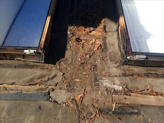 雹被害による割れは、広範囲に渡って確認出来ます。屋根材だけでなく、波板を固定する下地となってる桟木も折れてしまっている状態です。復旧工事として、新しい波板の張替えと合わせて桟木の交換も必要です。