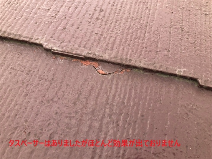 タスペーサーを使った縁切りと、棟板金のケレンを行います。